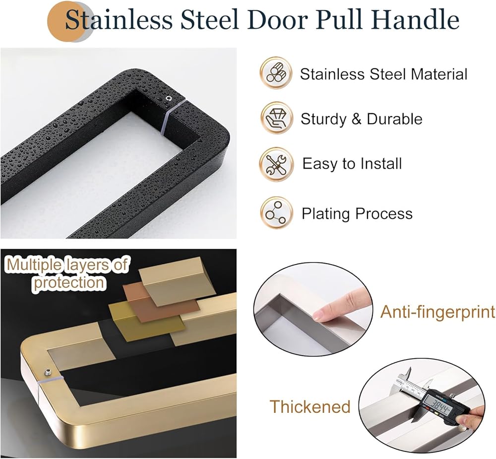 Discover a stylish and durable double-sided door pull handle that blends minimalist design with functionality. This high-quality handle is crafted to enhance both the appearance and usability of your doors. **Product Specifications:** - **Material:** Premium 304 Stainless Steel - **Colors Available:** Black, Gold, Silver - **Lengths Available:** 32.5 cm (12 3/4"), 42.5 cm (16 3/4"), 52.5 cm (20 5/8"), 62.5 cm (24 5/8"), 72.5 cm (28 1/2"), 82.5 cm (32 1/2"), 92.5 cm (36 3/8"), 102.5 cm (40 3/8"), 122.5 cm (48 1/4"), 152.5 cm (60"), 162.5 cm (64"), 182.5 cm (71 7/8") - **Tube Diameter:** 2.5 cm (1") x 3.8 cm (1 1/2") **Package Includes:** - 1 x Door Handle - 1 x Cross Screwdriver - 1 x Allen Wrench **Key Features:** - Made from sturdy 304 stainless steel for durability. - Features a sleek design for a comfortable grip. - Dual-sided mounting suits both push and pull needs, versatile for any door. - Easy to install and maintain; waterproof and wear-resistant. - Includes a silicone gasket to protect the contact surface. - Ideal for both commercial and residential settings. **Usage Tips:** - Designed for double-sided use on a single door, not suitable for two doors with one handle. - Slight measurement variations up to 1 cm (0 - 3/8") may occur. - Color may vary slightly due to lighting and viewing angles. **Customer Support:** For any questions about this door pull handle, please contact us. We are dedicated to offering the best solutions for your needs.