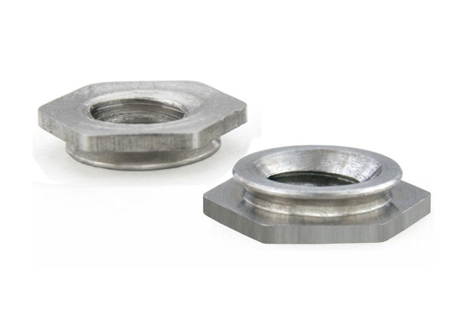 This listing is for twenty five nuts. These fasteners are ideal for applications where a thin sheet requires load-bearing threads but still must remain smooth, with no protrusions on either surface. The PEM flush nut can be installed easily by squeezing it into a round hole in metal sheets.