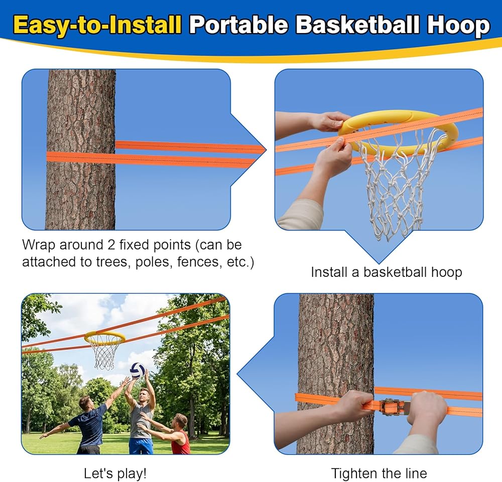 Forget the need for a permanent court. The travel basketball hoop stand is engineered for true mobility. Simply find 2 suitable fixing points (like poles or trees) and set up your game instantly. It's the perfect solution for: