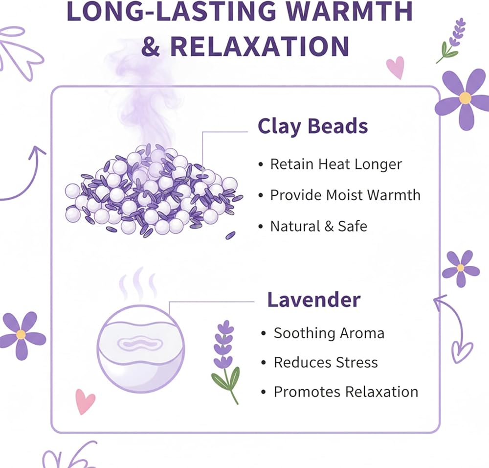 Soothing Warmth in Seconds:Experience quick and convenient relief. Simply heat this pad in your microwave for a short time, and enjoy long-lasting, gentle warmth to help ease muscle stiffness and comfort your body.