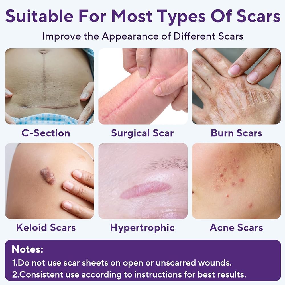 Suitable for Most Types of Scars: Our silicone scar sheets recommended for various types of scars including surgical scars, c-section scars, burn scars, keloid scars, and others. For best results, use the silicone scar strips on new scars for at least 8-12 weeks and on older scars for up to 2-6 months.