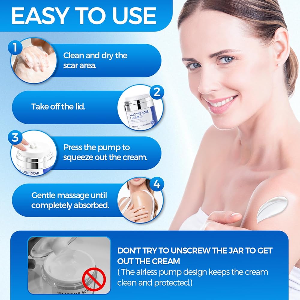 AFTER-SALES SERVICE: For best results, use the silicon scar gel for at least 6–8 weeks on new scars, and continue application for 3–6 months on older scars to support visible improvement over time. If our scar cream for old scars is damaged during transportation, or you are not satisfied with our scar fade cream, please contact us through Amazon and you will get satisfactory service