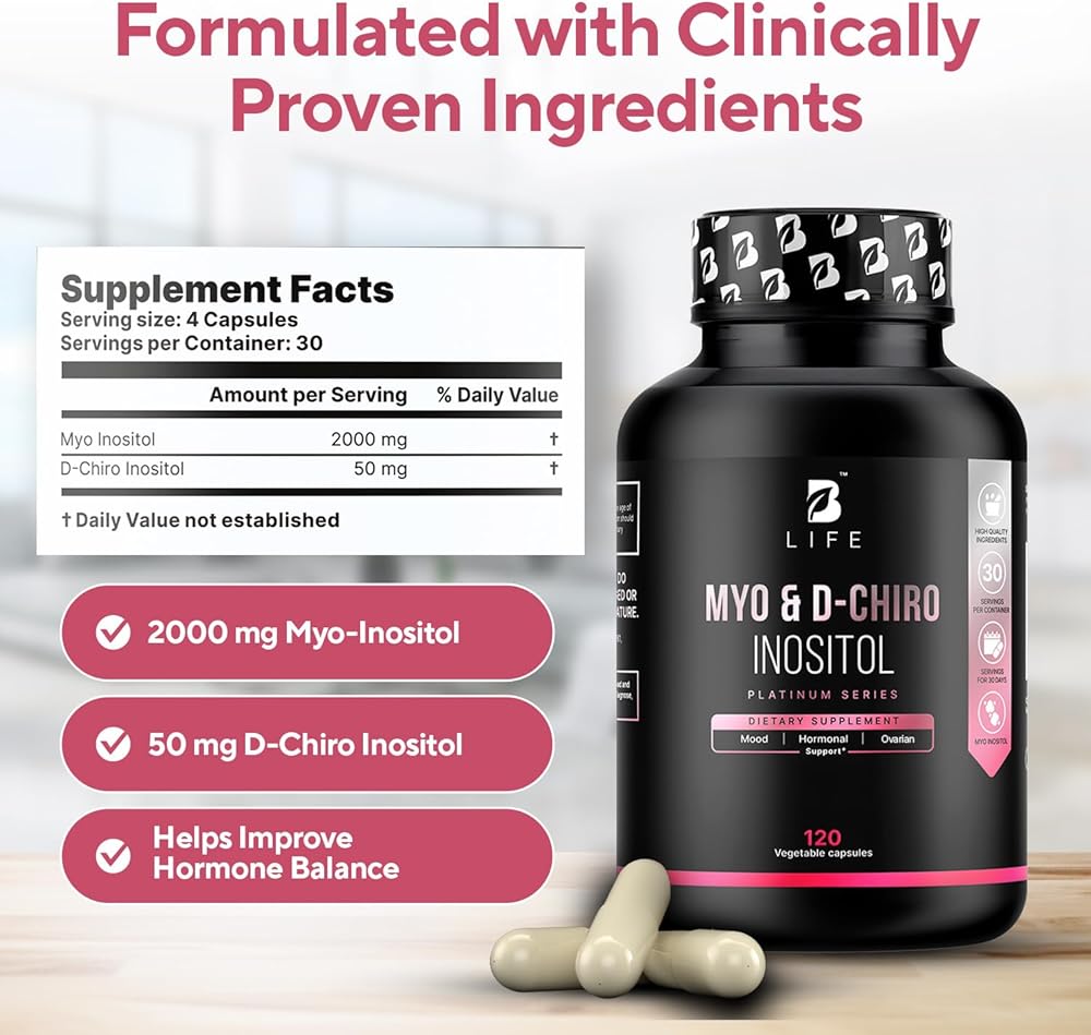 Clinically Effective 40:1 Myo-Inositol & D-Chiro Inositol Blend Our premium formula delivers the gold-standard 40:1 ratio of myoinositol and d chiro inositol, shown in clinical studies to promote hormonal balance, ovarian function, and healthy metabolic support. This precise ratio is ideal for women seeking a natural solution to hormonal irregularities.