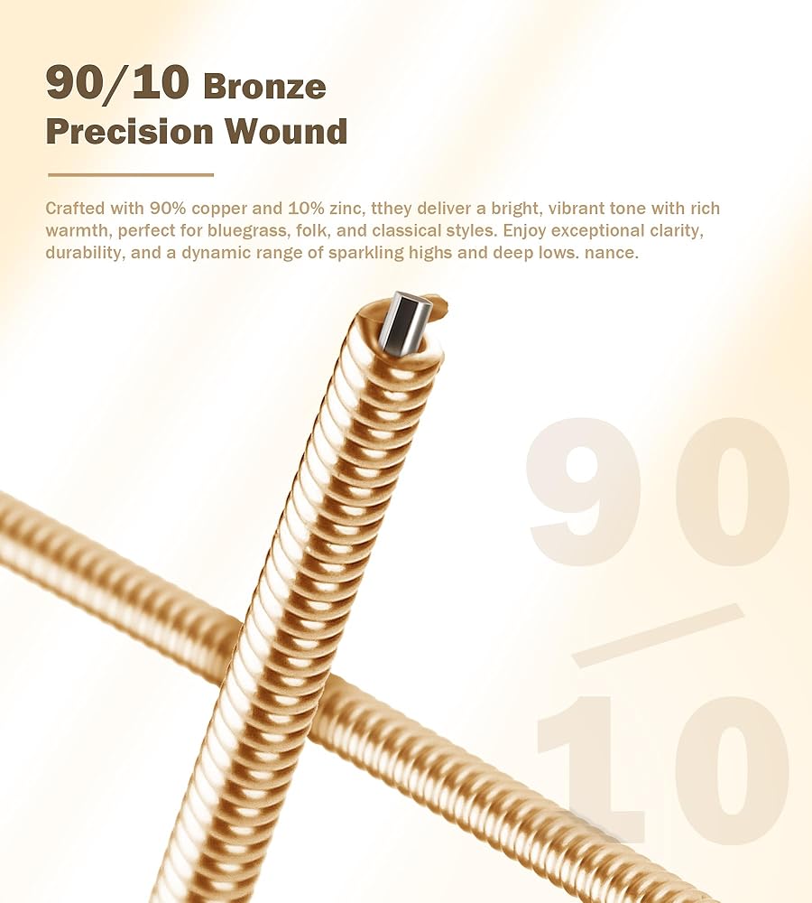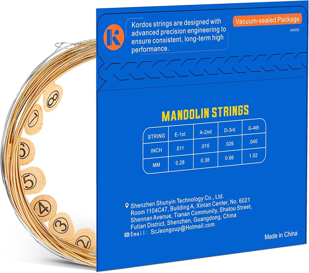 ✔Premium 90/10 Bronze Wound Construction - Crafted with a high-quality 90/10 bronze alloy wrapped around a hex carbon steel core, KORDOS Mandolin Strings deliver superior tonal clarity and resonance. Not only enhancing brightness and warmth, but offering rich, crisp, and long-lasting sound quality for both traditional and modern mandolin playing styles