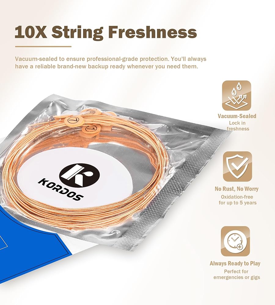 ✔Innovative Vacuum-Sealed Packaging for Maximum Freshness - Designed for tone and longevity, these strings stay fresh and ready to play. This unique packing method ensures that your strings stay in optimal condition until you're ready to use them, extending their shelf life and preventing premature wear
