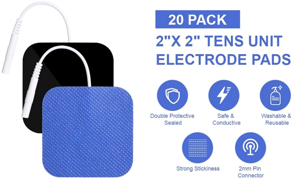 【Package】: There are five clear sheets in box, with 20 square 2" electrode pads for TENS unit