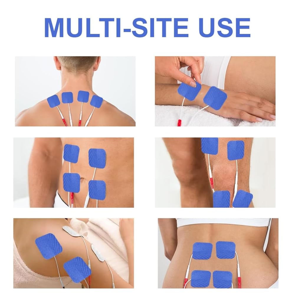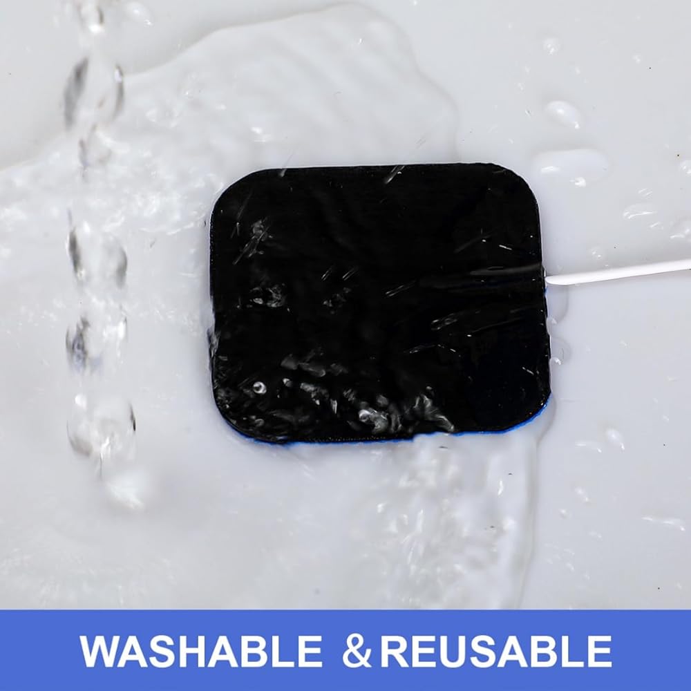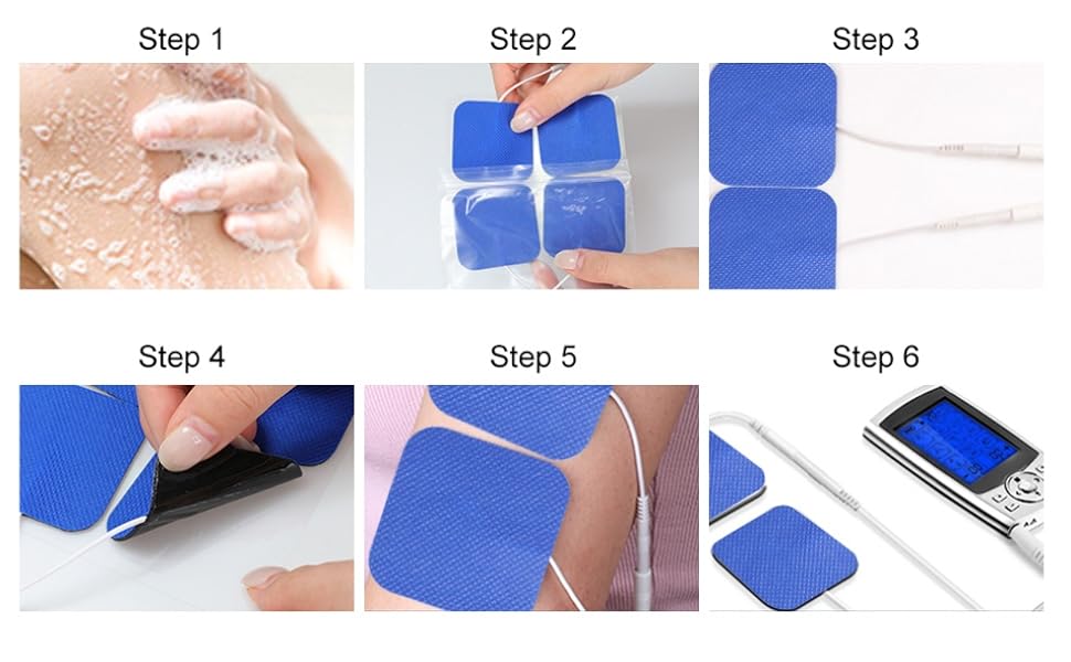【Reusable】: These tens unit muscle stimulator pads are designed for multiple uses. Remember clean and dry the application areas before using. After use rinse the adhesive gel under cold water, let it air dry, and place the sticky side on the clear sheet