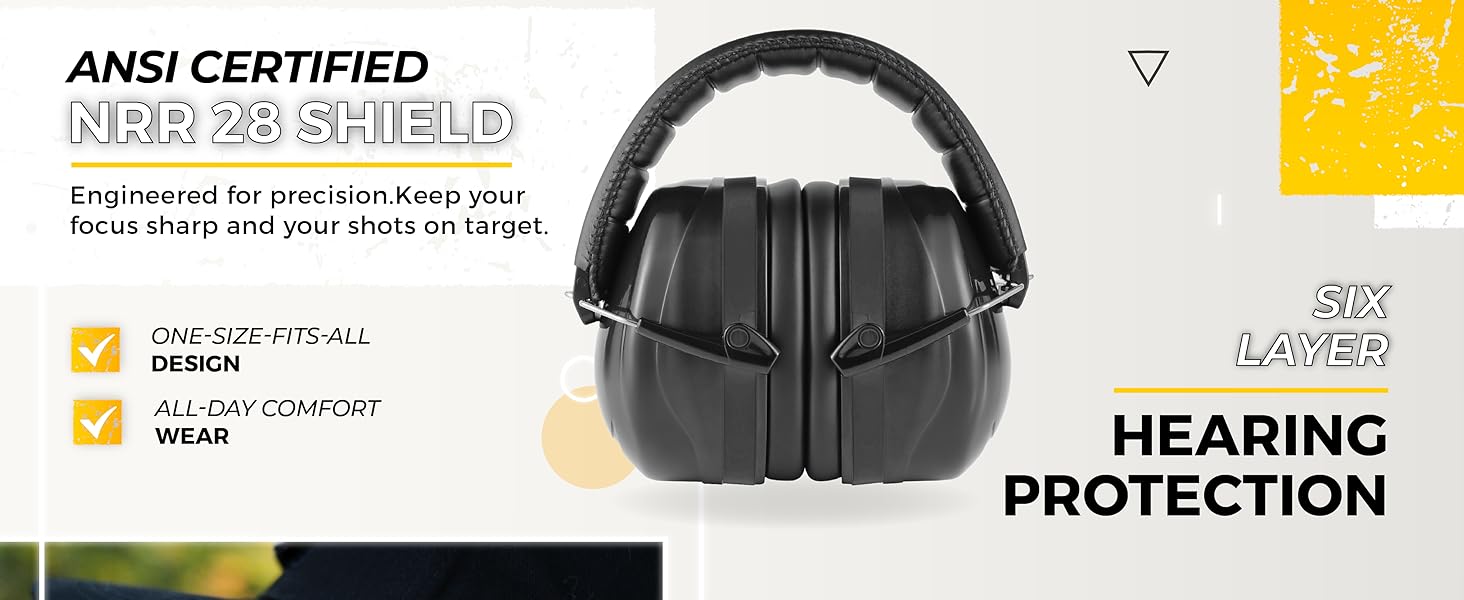 SHOOTING HEARING PROTECTION: Boasting an NRR28 rating, our passive ear muffs are the epitome of gun range hearing protection. With a "1-size-fits-all" design, they fit adults and teenagers. Comfortable with plush ear cushions and an adjustable soft headband, tailored for all-day shooting sessions. These compact muffs tuck effortlessly into range bags. While ensuring protection from loud noises, they notably allow clear communication, so you never miss a word from your gun range instructor.