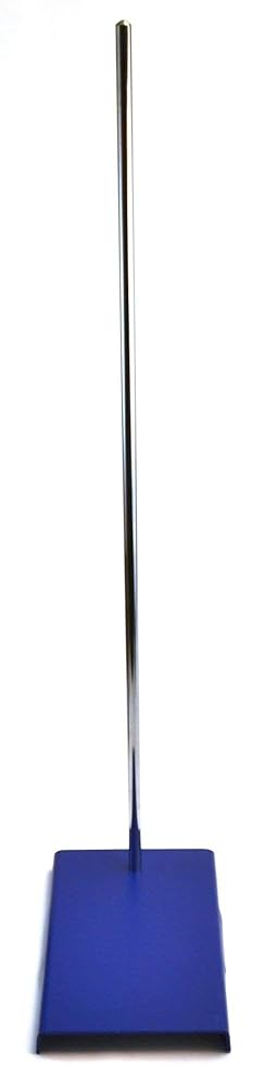 The retort stand is made of chemical-resistant cast iron with a blue coating, and features a tapped hole, suitable for connecting the included rod, or any other rods with a 10mm x 1.5mm metric thread. Stand measures 10" long, 6.25" wide and approximately 2" in height. Included steel rod measures 29.5" tall, 12mm in diameter and features a 10x1.5mm metric thread. Stand weighs 2.6lbs, providing superb stability for basic experiments & setups. The durable and sturdy construction of this set makes it an excellent choice for science classrooms, household laboratories & basic professional laboratories.