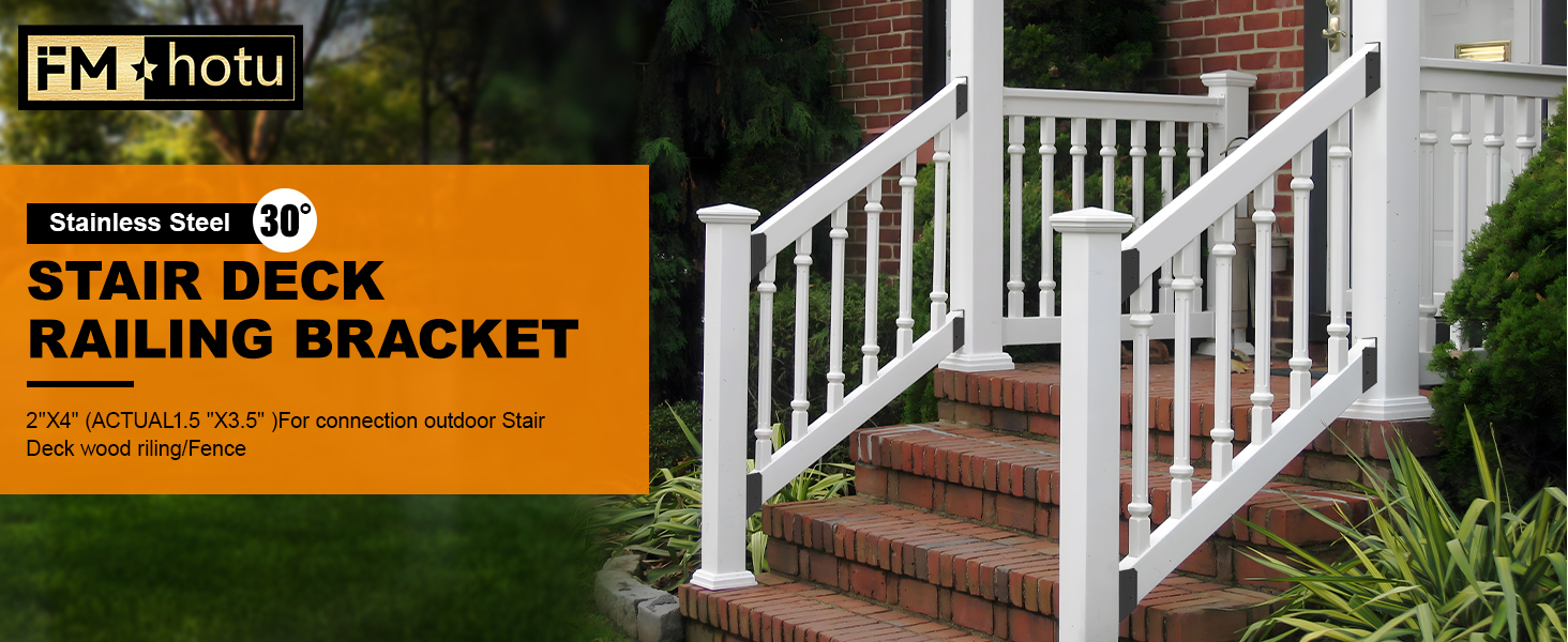 【QUALITY DESIGN】 Stair railing bracket connector fit standard 2"x4" (Actually 1.5"x3.5") wood deck railing, Can be installed in the 30 ° oblique angle of the deck railing stairs, Hidden stair railing bracket closely fit with the wooden post connection, Deck railing bracket hidden design, indoor and outdoor can choose to use, beautiful and generous.