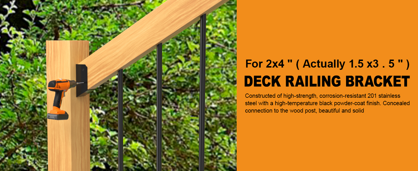 【APPLICATIONS】The Concealed Stair Deck Railing Bracket connects to standard 2" x 4" (actually 1.5"x3.5") wood components and is suitable for connecting and installing deck railings, fences, railings.