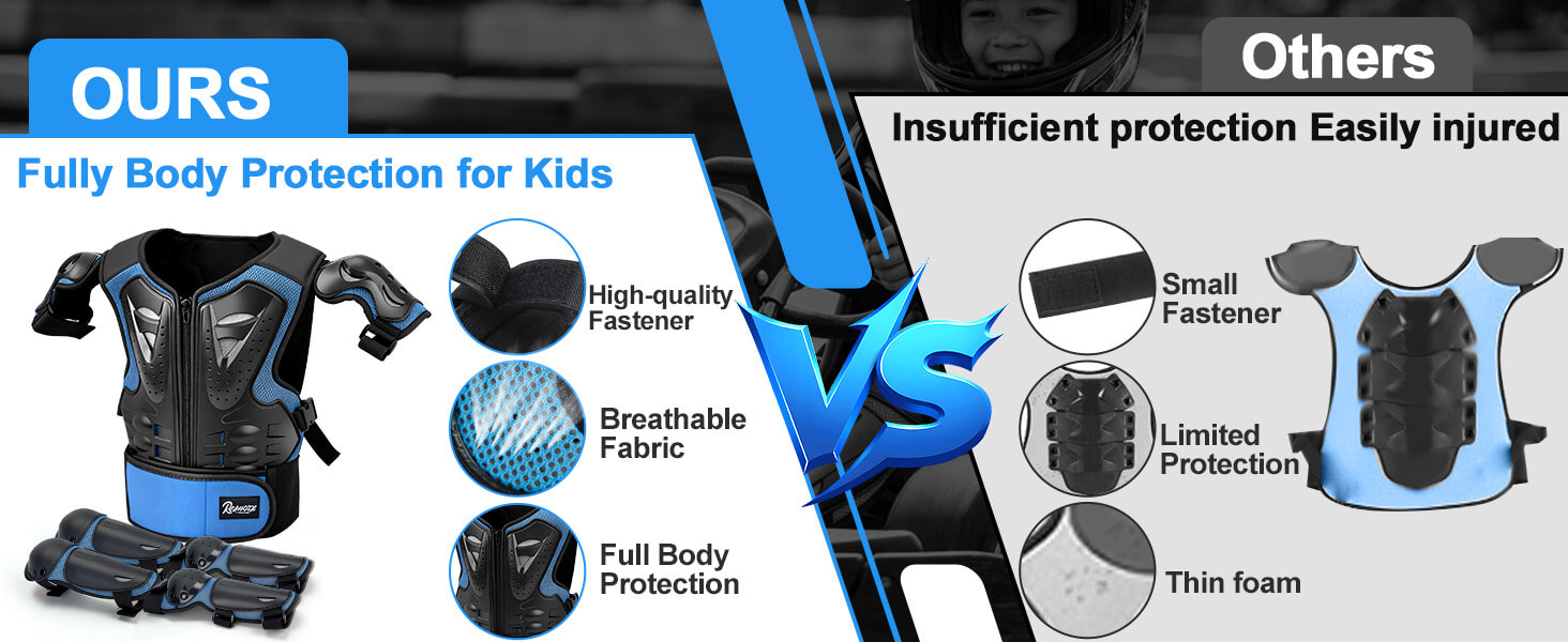 Rugged Protection Where It Counts: We've armored up the front, back, and shoulders with a tough, high-impact PE shell. The integrated elbow and knee pads feature the same hard-shell exterior to deflect bumps and slides, giving you peace of mind every time they hit the trail.