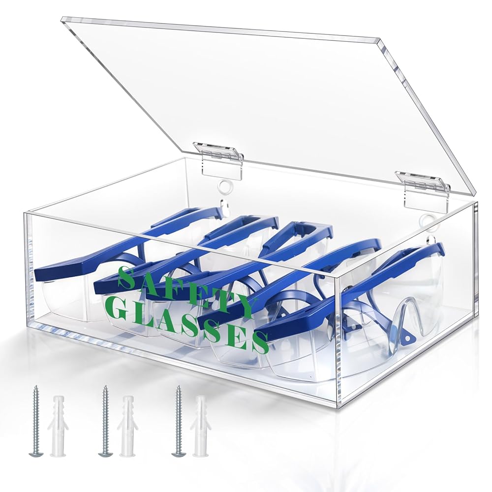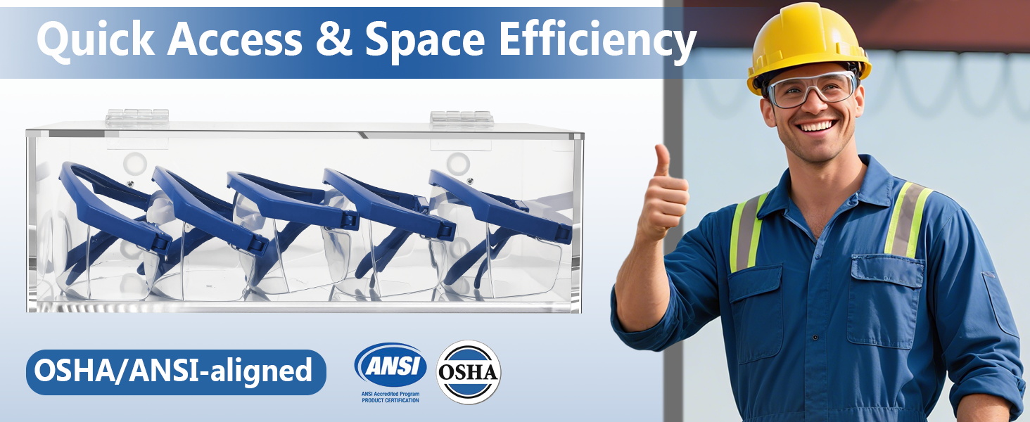 - Quick Access Safety Glasses Holder: Wall-mounted acrylic safety glasses holders for grab-and-go convenience.