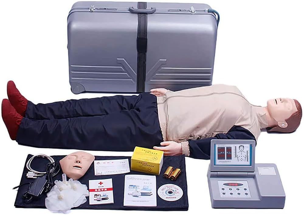 Resuscitation DollSimulated airway opening and artificial inflation, chest fluctuations, chest compressionsVoice prompt, frequency tone prompt, number count, score printingThe indicator lamp shows (pressure position, pressure depth, beat size) pupil zoom and carotid pulsationpackage includesFull Body CPR Manikin Kit * 1Display controller * 1Hard plastic box * 1Control panel * 1Power supply * 1Data line * 1Barrier (50 sheets/box) * 1Replaceable pulmonary bag device * 4Printing paper * 2Changeable dough * 1User manual CD * 1First Aid Manual * 1User manual * 1