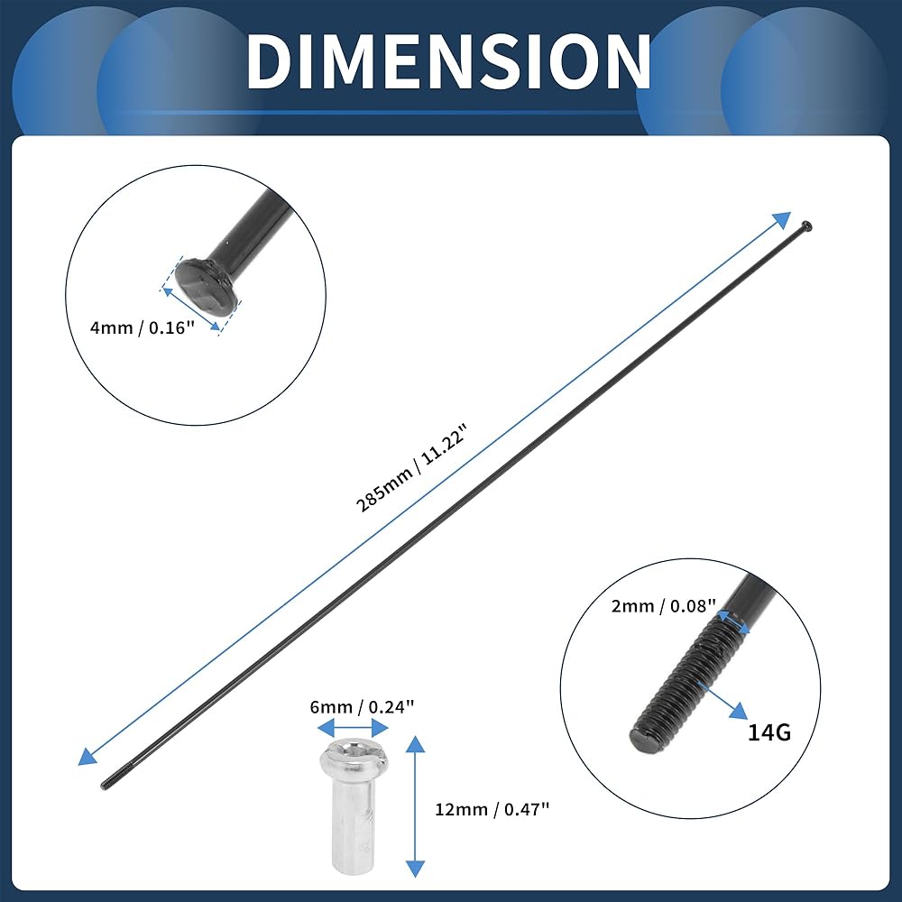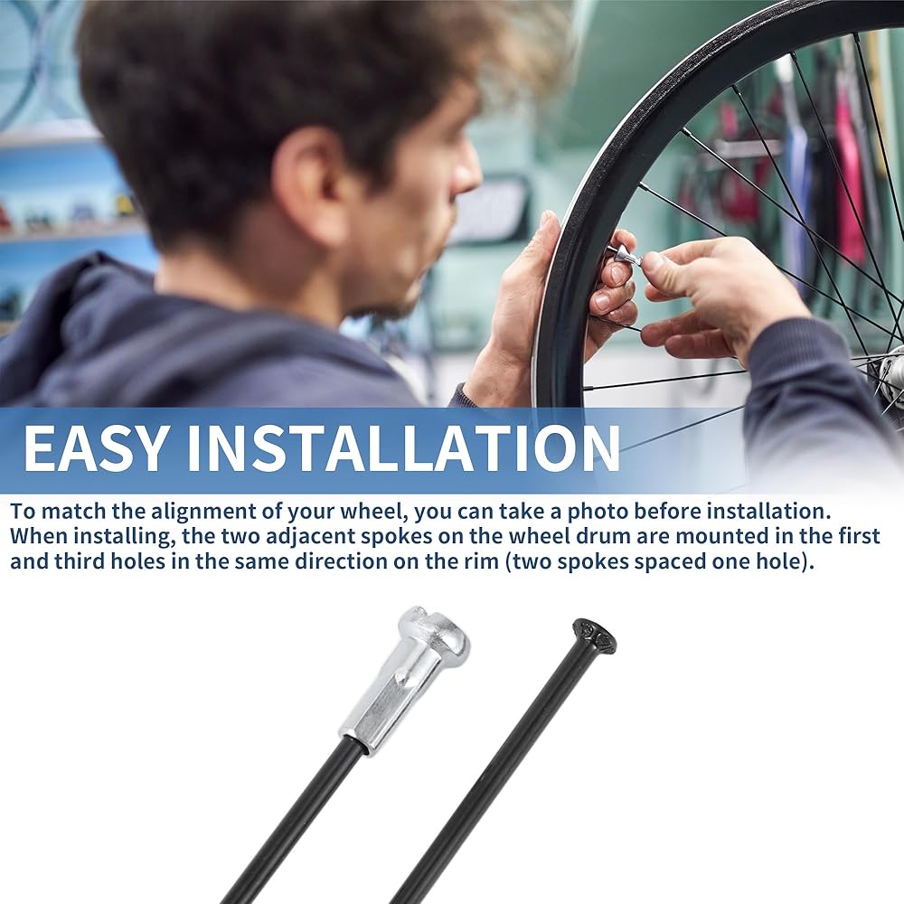 Easy Installation: When installing, the two adjacent spokes on the wheel drum are mounted in the first and third holes in the same direction on the rim (two spokes spaced one hole). The length of bicycle spokes depends on the rim, hub, and braiding method. Please measure the old spokes and confirm the size before placing an order. To match the alignment of your wheel, you can take a photo before installation.