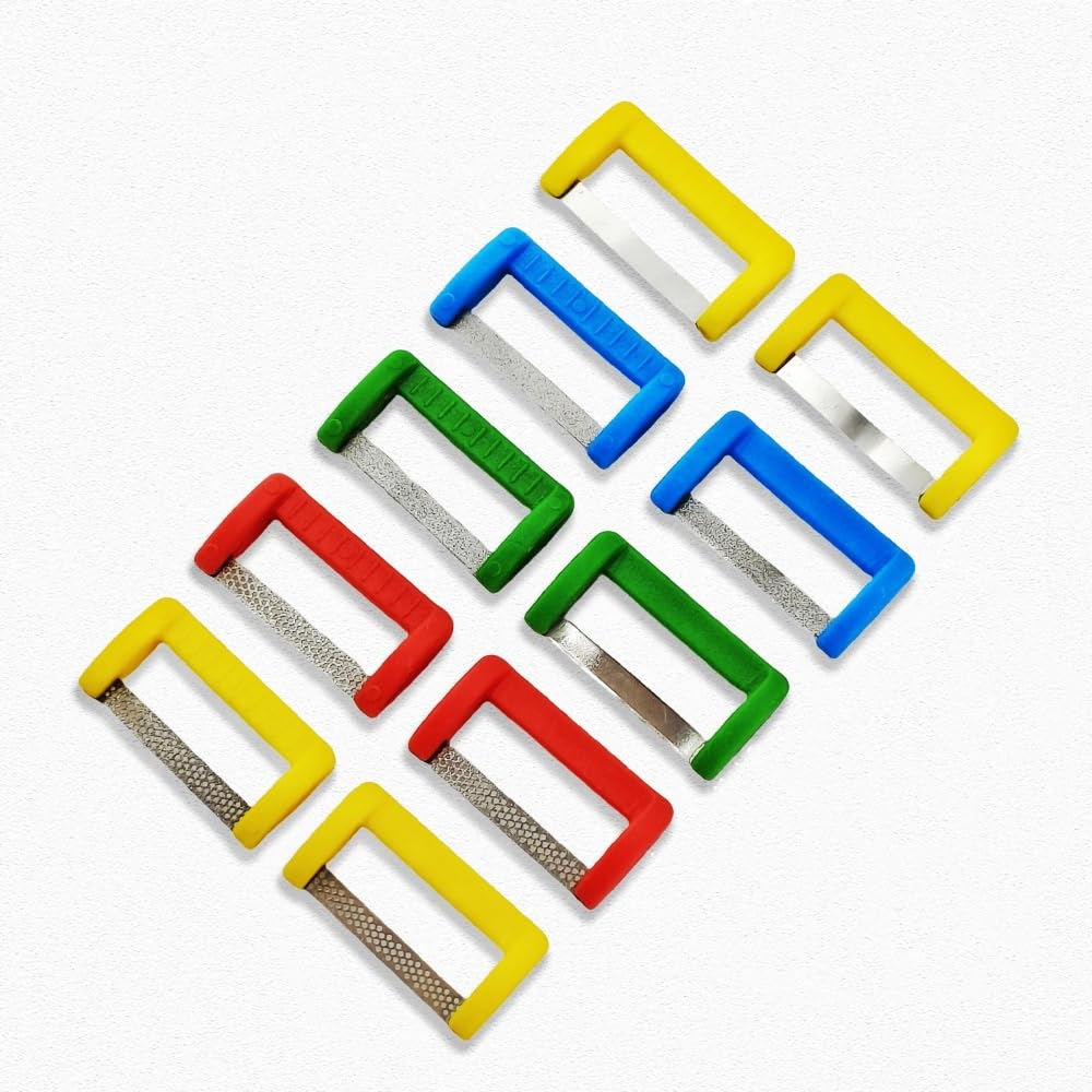Dental Orthodontic Interproximal Enamel Polishing Tool Reducted Treatment Enamel Reduction Polishing Hand Use Tool ---- Polishing strip is Single side or Double Sides Diamond/Metal Sanding Surface ---- The cutting force for this strip is more larger ---- Diamond sand with holes,which is more convenient to cut ---- Clean with clear water,then Could be sterilized under 121 ℃ and high pressure ---- Disposable use ---- For Teeth Whitening ---- Quantity:5 pieces or 10 pieces for single of mixed ---- Random color, if you need to specify color, please leave a message when placing the order. ---- Price not includes the model in image