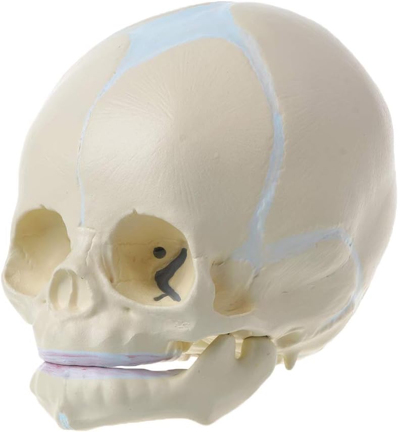 Features: Dimensions: app.13x10x10.5cm/5.12x3.94x4.13in This fetal skull shows the process of osteogenesis, how the bones of the skull form and fuse together. The fontanelles will overtime become bone. The sutures will form along the bony plates help fuse the skull. Baby Skull Model only, other accessories demo in the picture is not included!