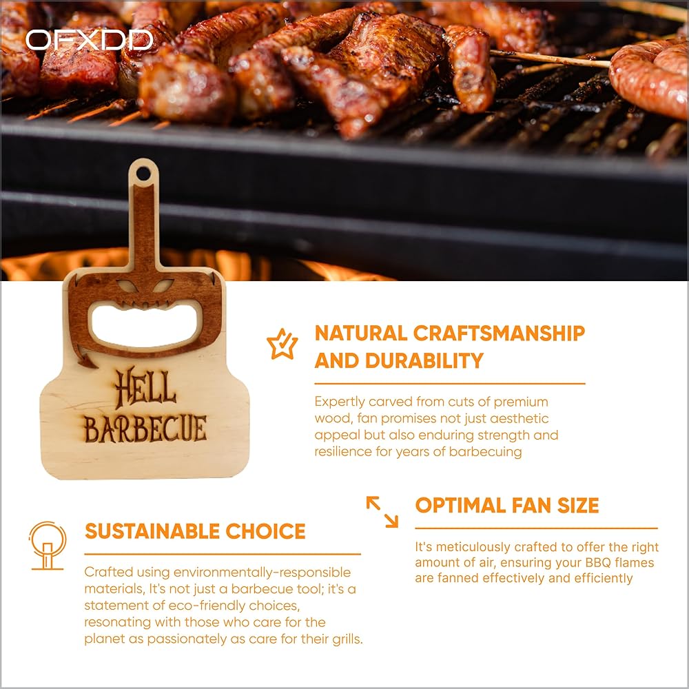 Calling all fans of BBQ. Are you looking for the key ingredient to optimize your grilling technique? Look no further than the hand fan for hell barbecue. It is a grill master's best companion, not simply another accessory. Goodbye, slow-burning charcoal. With the help of a hand blower, you can quickly get your barbecues lit and ready to go. The days of eagerly waiting are over; with a hand crank blower, you'll be the fastest in the barbecue industry. The BBQ blower, which is made of high-quality wood, is not only effective but also a fashionable conversation piece. You can feel its durability in your hand. Make it the talk of the BBQ gathering. Your elegant BBQ equipment will make your neighbors envious in addition to your delicious grilled foods. A grill fan for BBQ is your dependable friend whether you're having a backyard party, a family picnic, or a camping excursion under the stars. It is the ideal tool for grilling while on the road because it is portable and simple to use. Don't allow the flames to go out. The barbeque fan makes sure that airflow is constant, keeping your grill hot while you relax. Its handle turns bring you one step nearer to grilling nirvana. Not a battery. No electrical power. Simply using manual power. The barbeque blower keeps you in command and makes it possible for you to control the flame's intensity while grilling. Utilize the barbeque hand fan to enjoy the thrill of the grill. Let the talks flow around the ferocious dance of the flames as the flavors come to life. Ultimately, the thrill of a perfectly flaming grill and the creation of cherished memories are what make barbecue so special. Why let subpar flames sap your enthusiasm for grilling? Utilize the hand fan in your grilling arsenal to new heights.