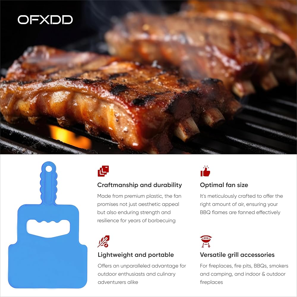 The plastic hand fan for blowing fire is made of plastic, lightweight, ductile, and comfortable. Bbq fan is a very convenient and necessary thing. Charcoal fan blower keep your face away from the fire when you want to blow briquettes. Hand fan plastic has specially designed placement hook. Hang fan is intended for fireplaces, fire pits, bbqs, indoor and outdoor fireplaces. Grill hand fan easy to use just wave it from left to right or from up till down. Plastic fan have huge advantages over natural gusts of wind. Our barbecue hand fan this heat resistant plastic hand fan quickly heats up bbq fires, briquettes, coals and wood. Hand fan bbq designed for comfortable manual operation, no battery or additional fuel required. Setting up fire for grilling fan quickly with this air blower, no need to blow through your mouth, helping you make grill more easily. There will be no problems with the fan bbq during transportation and carrying: it will always fit into a bag or backpack. Charcoal bbq fan provide a very strong airflow. Charcoal hand fan consist of strong and durable heat resistant plastic. With a bbq fans for a bonfire, you can properly light a fire and maintain heat by blowing air to make a barbecue. Bbq hand fan perfect for starting the fire or reviving a fire that is died down.