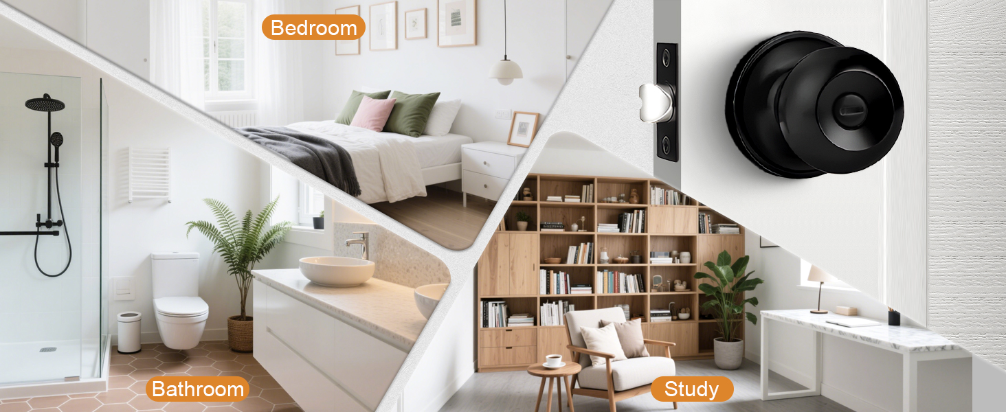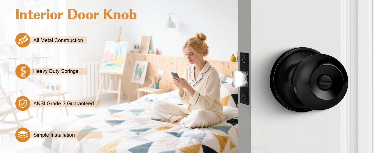 Round Privacy Door Knob : Privacy door knobs with elegant matte black finish. Confirm with ANSI Grade 3, Exceeds 200,000 cycles.