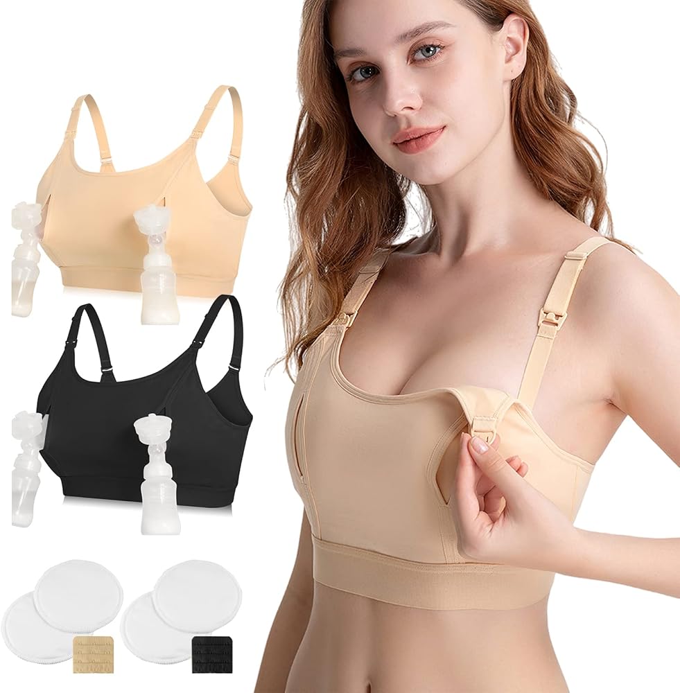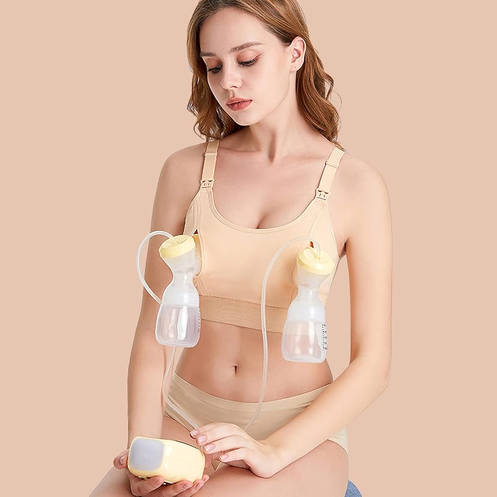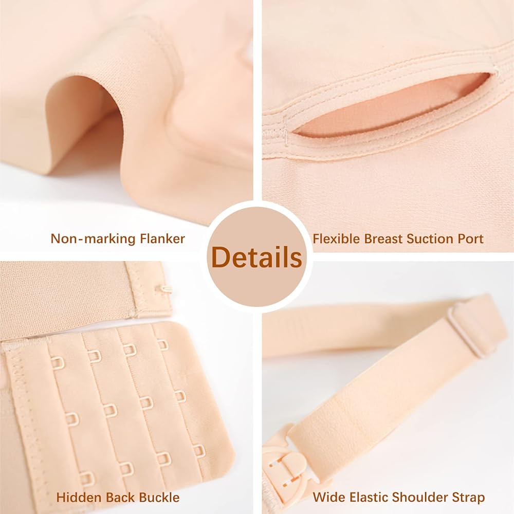 ➊Hands-Free Pumping Bra - Our pumping bra provides invaluable support for nursing mothers with its ability to firmly hold flanges in place even through the most rigorous pumping sessions. The side band support, wide sling, support ribbing, U-shape strap, and hook and eye closures come together to create the perfect fit and prevent discomfort.
