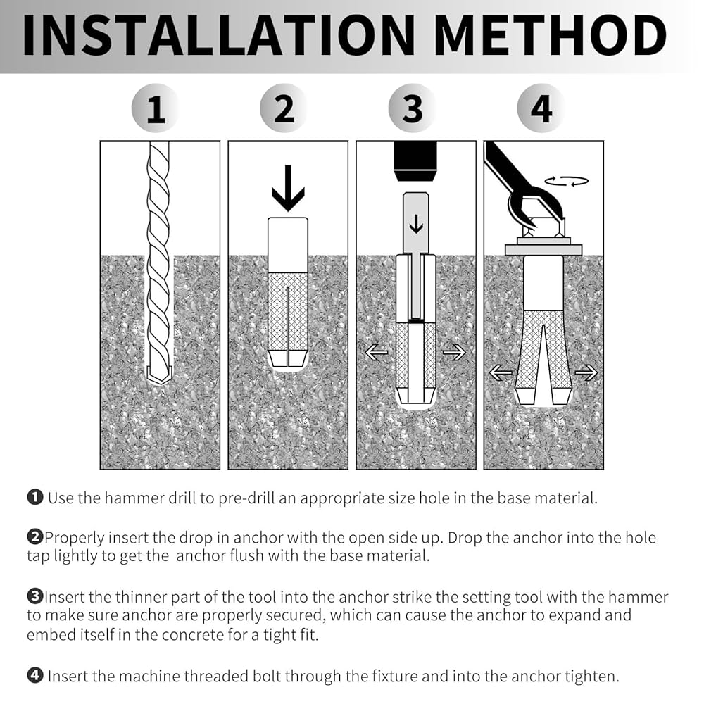 High-Quality Material: Made from premium zinc-plated steel, these drop-in anchors offer excellent resistance to corrosion, ensuring long-lasting durability.