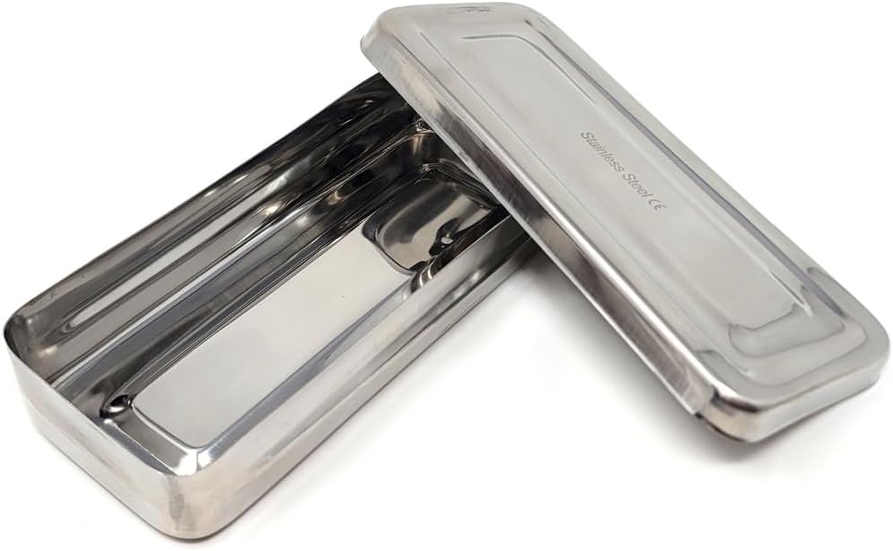 Multipurpose Instrument Box Stainless Steel Container Tray with Lid for Lab Instrument Supplies to Store, Arrange, Transfer, Organize - 7"L x 3"W x 1.5"H