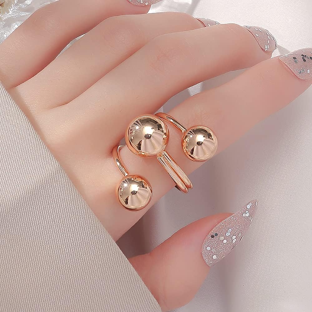 ♥SIZE & STYLE♥ Big Ball:10mm(0.39in),Small Ball:8mm(0.31in). Round Ball Statement Stacking Rings for Women and Girls.