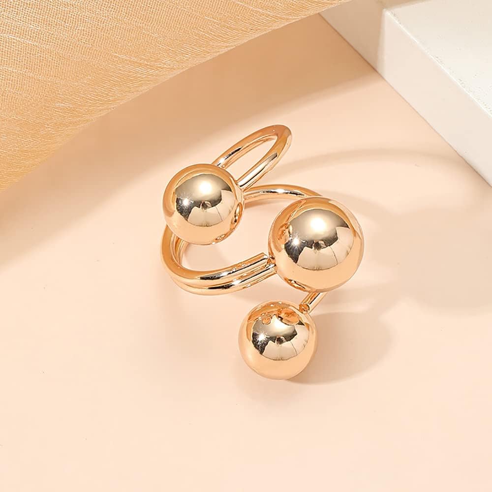 Minimalist Ball Statement Ring for Women Girls Silver Gold-Toned Layered 3 Round Balls Open Wrap Finger Rings Comfort Fit Boho Geometric Unique Christmas Party JewelryWedding Halloween Size 8
