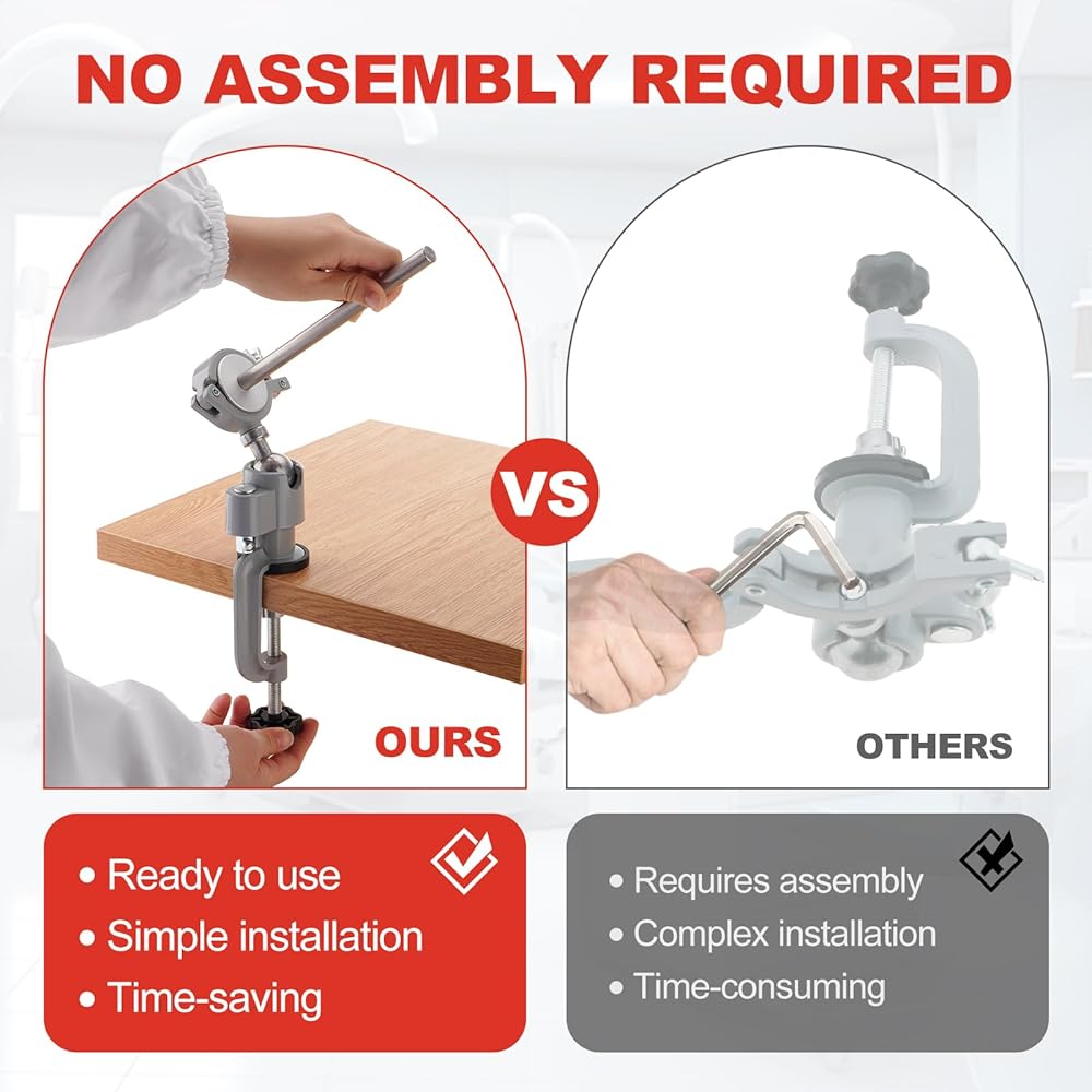 No Assembly Required:The dental clamp secures to table tops up to 54mm thick tool-free, offering faster setup than other models