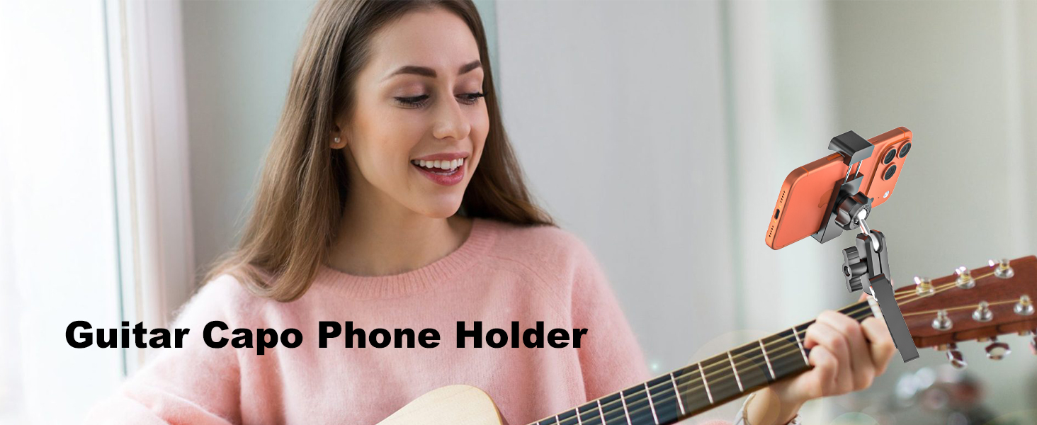 【2-in-1 Innovative Design】Guitar phone mount combines a guitar capo and a phone holder into one creative accessory, perfect for practice, recording, and live performance—a versatile tool for every guitarist