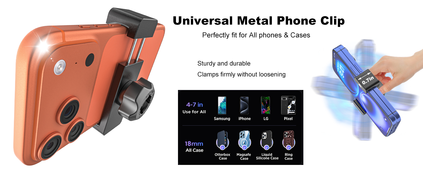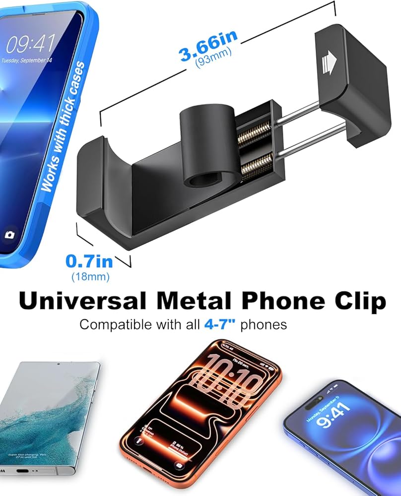 【Suitable for All Phones and Thick Cases】The phone holder capo for acoustic guitar 6 string is made of high-quality metal, which is corrosion-resistant, rust-proof, durable, and has a larger size and higher height. It is suitable for all 4-7 inch phones and the thickest phone cases. For example, iPhone 17 16 15 Pro Max/14 Pro Max/14 Pro/14 Plus/14/13ProMax 13Pro 13 13Mini XSMax XS XR X 8 Plus 7 6S 6 5S SE, Galaxy S23 Ultra S22 S21+ S21 S20 S20+ S10 S10+ S10e S9 S9+ S8 S8+ S7 S6, etc