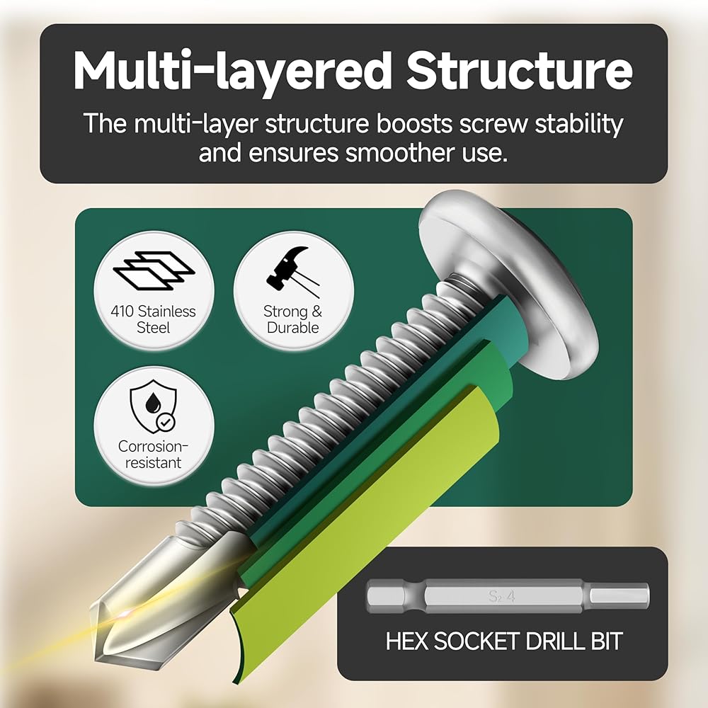 Value Pack & Easy to Install – Includes 110 stainless steel self-tapping screws with Allen socket drive. Self-drilling design reduces slippage and ensures fast, smooth installation. Perfect for metal, wood, or plastic in home, office, or workshop use. Works as self-tapping screws, self-drilling screws, or metal screws — ideal for all your fastening needs.