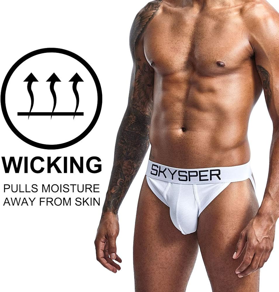Breathable Men's Jockstrap Underwear - SKYSPER jockstraps are made of soft/non irritating cotton and stretch elastic waistband, and the lack of fabric in the back means zero bunching, which has excellent moisture wicking function and keeps you cool and dry all day.