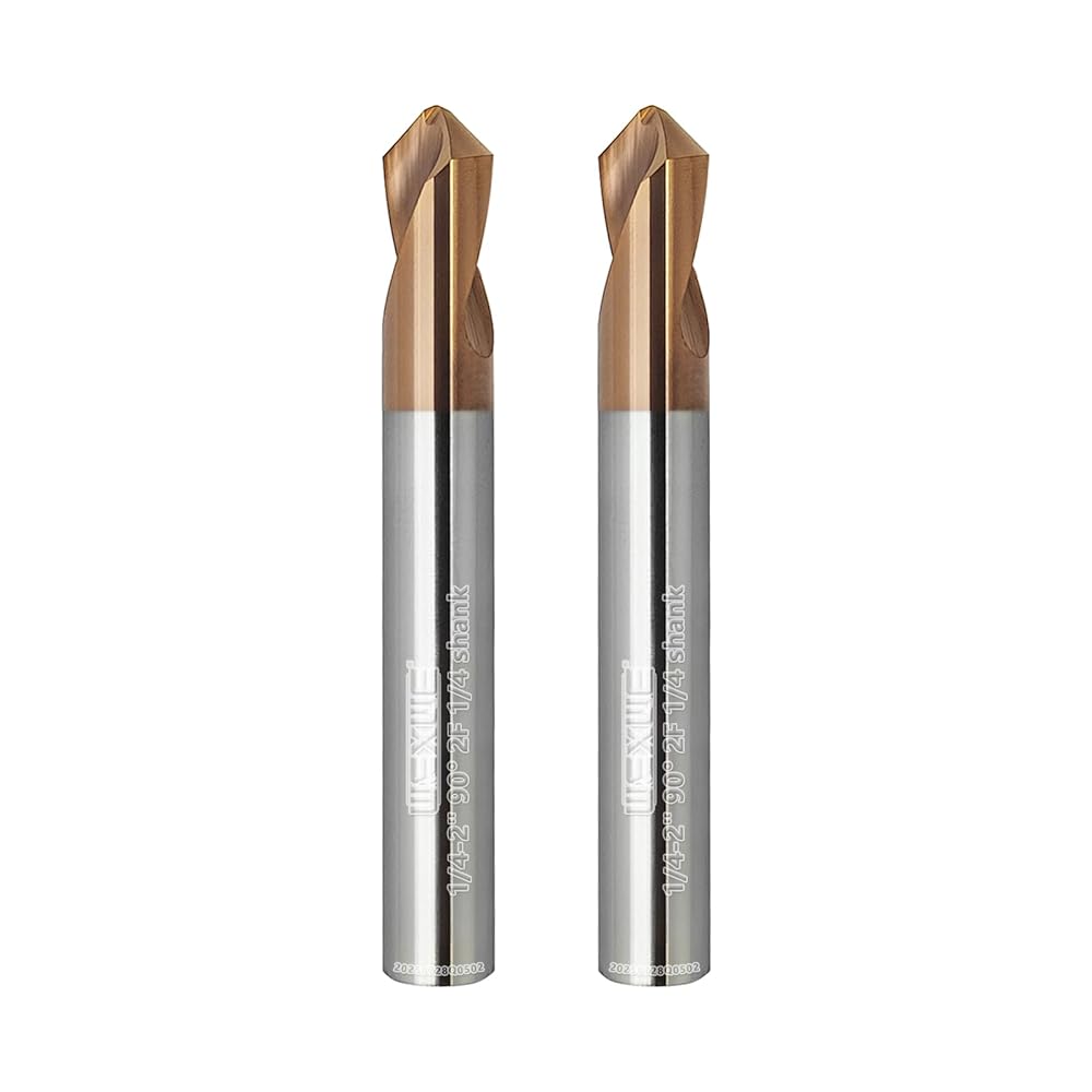 Tools Chamfer End Mill,Drill Tip with Cutting Edge for Carving, Drilling and Chamfering Suit for Alloy Steel, Hardened Steel, 90 Degree 2 Flute(1/4-2"-2CPS)