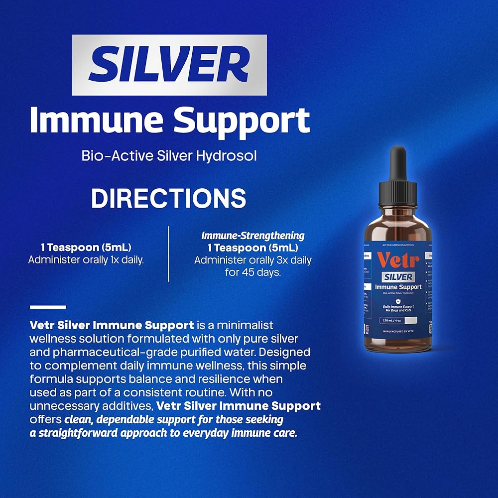 The Power of Pure Ingredients Vetr Silver Immune Support is crafted using only two high-quality components: high concentration silver and pharmaceutical-grade purified water. This distilled approach ensures that your pet isn't consuming hidden fillers or synthetic preservatives. It is the ideal choice for pets with sensitivities or those on a strict, clean-label diet.