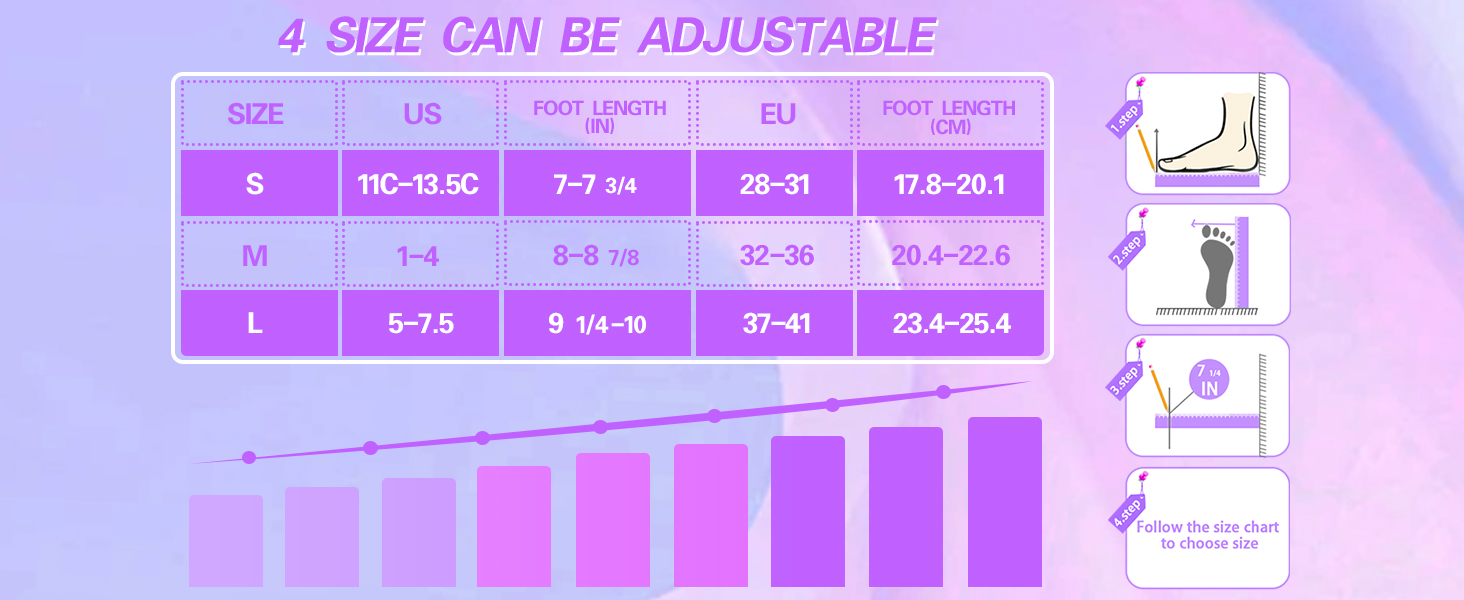 【Adjustable Growing Size】Designed to grow with your child! Our youth ice skates offer 3 sizes (S/M/L) with 4 adjustable gears, fitting US11-13.5C (Small), US1-4 (Medium), and US5-7.5 (Large). No frequent replacements needed—perfect for growing feet!