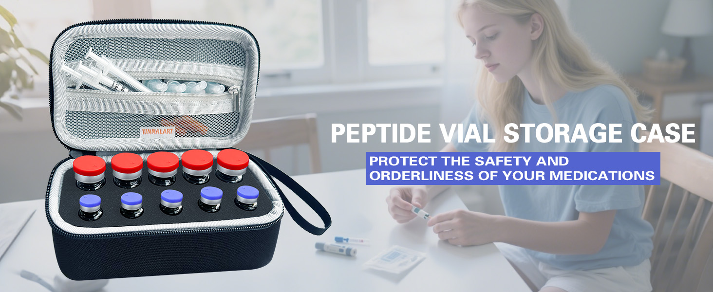 Secure Peptide Vial Storage Case - This case safely holds 5 pieces of 10ml vials and 5 pieces of 1-3ml vials, providing reliable protection for your peptide and insulin vials against breakage and contamination.