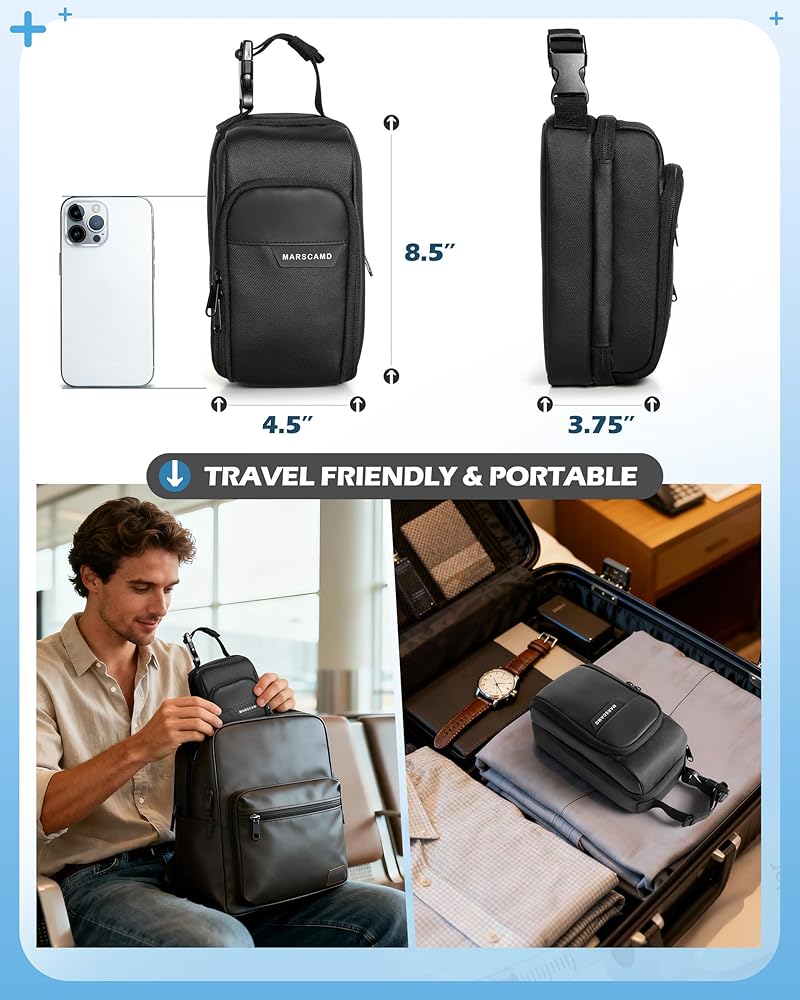 TRAVEL FRIENDLY & PORTABLE: Measures 4.5” x 3.75” x 8.5". Easily fits into backpacks, handbags, or travel bags.The adjustable buckle handle for easy carrying and attaching. Ideal for everyday carry or travel use.