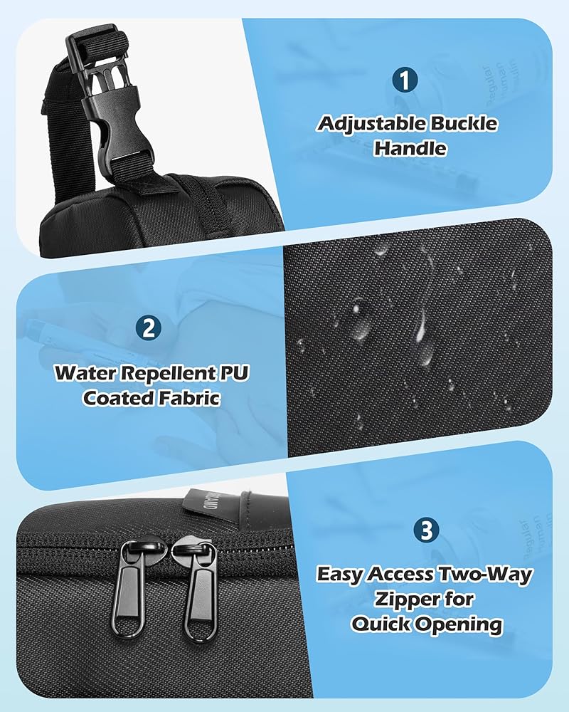 WATER RESISTANT & PROTECTIVE: Made of thick PU coated fabric that is water repellent, scratch-resistant and easy to clean. Thick padding helps keep the diabetic supplies in good condition.