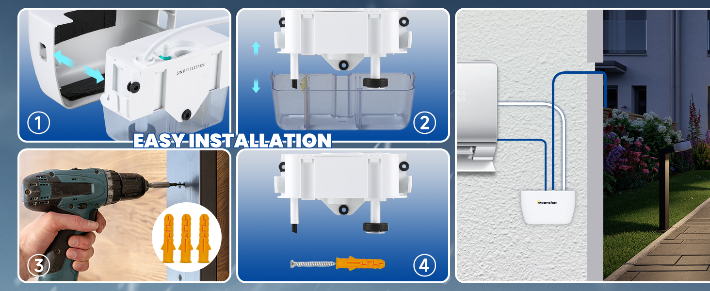 Your HVAC's Automatic Partner: HVAC condensation pump is designed with automatic operation and shutdown functions. It starts working when the water inside reaches the target position, and triggers self-drainage when it becomes full. Providing hassle-free condensate management and reducing the need for manual intervention.