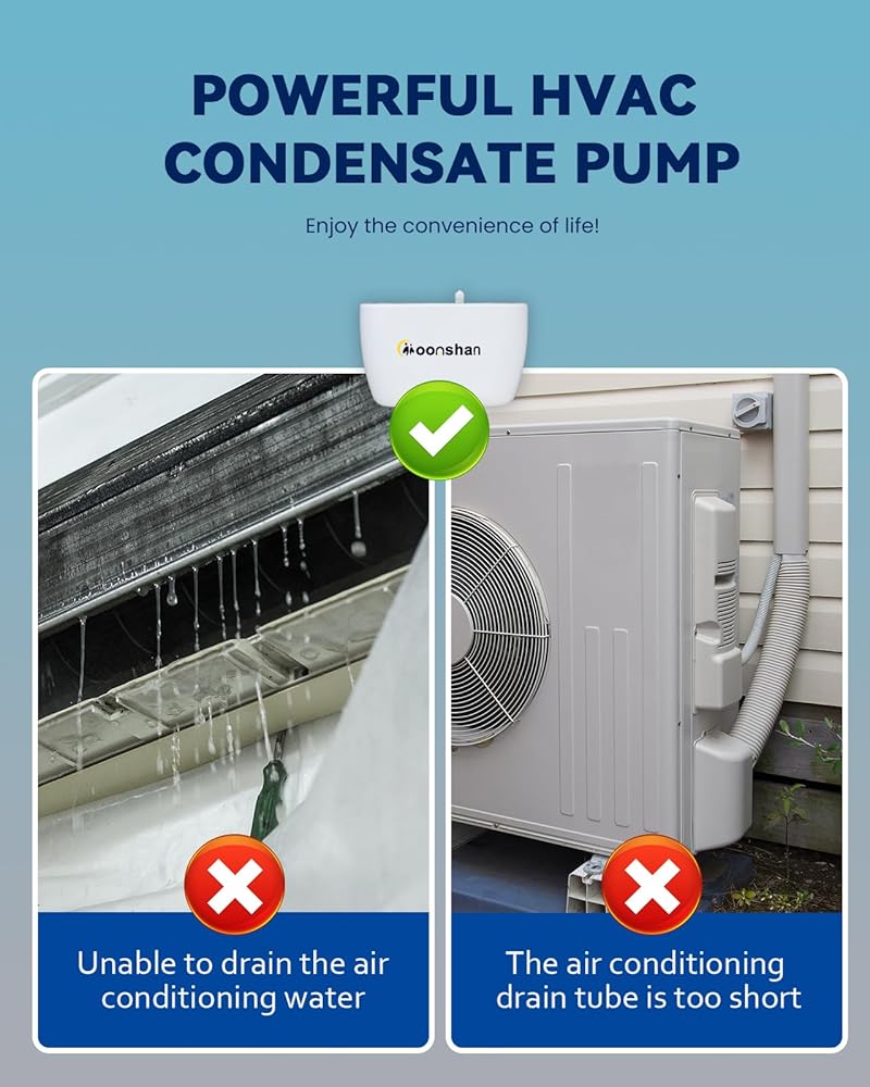 Versatile Application: Ideal for use with HVAC systems, dehumidifiers, furnaces, and air conditioners, which can efficiently manages condensate water.