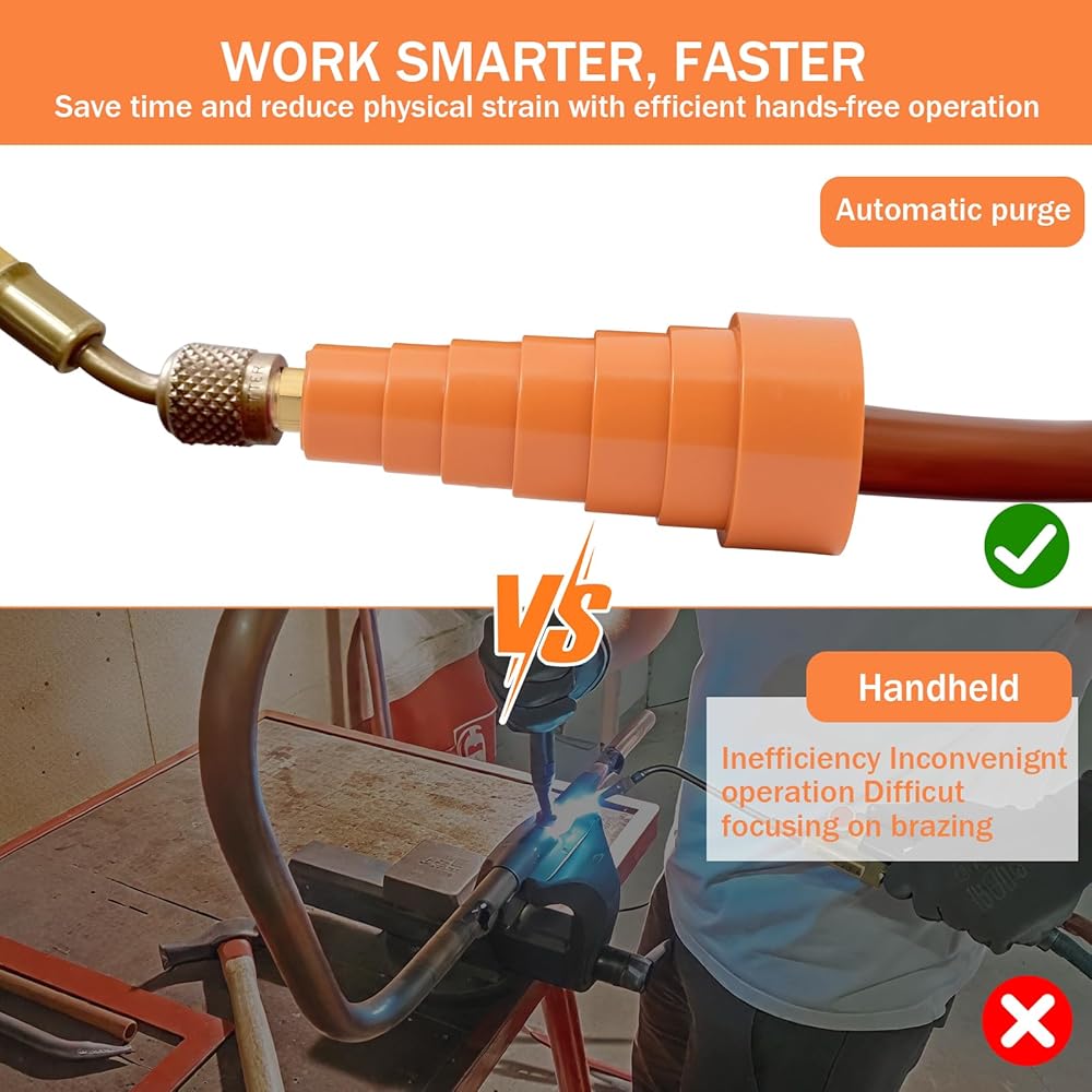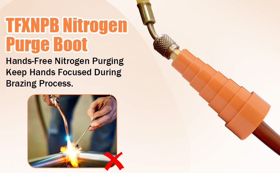 Hands-Free Nitrogen Purging: The TFXNPB nitrogen purge boot enables secure, hands-free connection between your nitrogen regulator and refrigerant line, eliminating tape or manual holding during brazing for improved safety and efficiency.