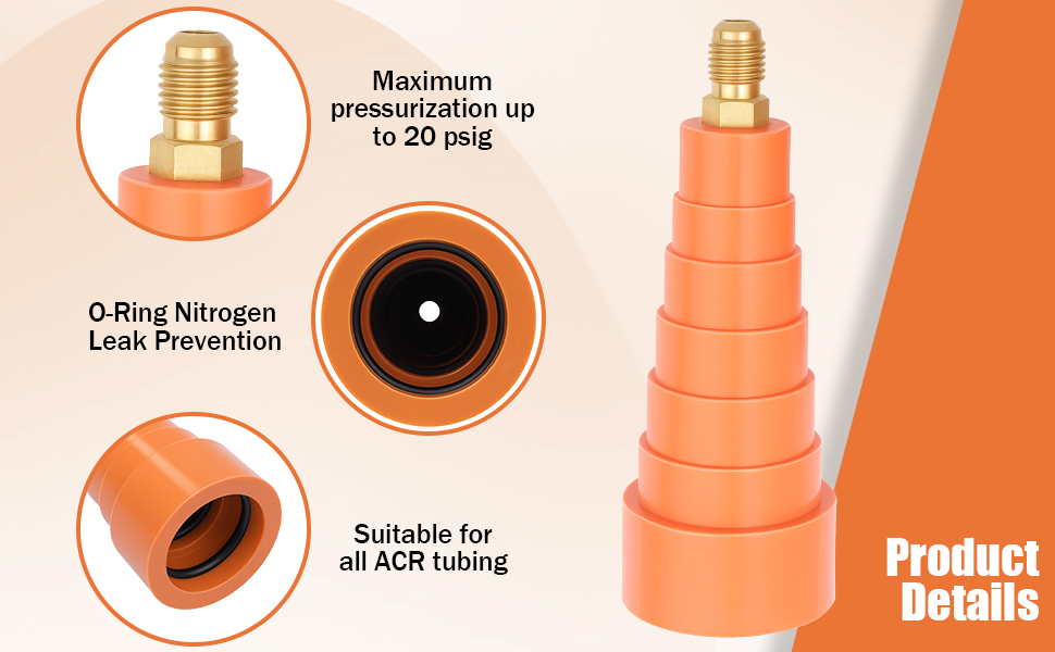 Multi-Size ACR Compatibility: Nitrogen regulator hvac designed to fit 3/8", 1/2", 5/8", 3/4", 7/8", and 1-1/8" OD ACR tubing; this versatile nitrogen purge boot ensures reliable performance across a wide range of HVAC and refrigeration applications.