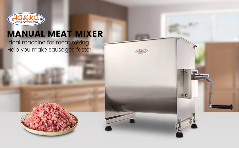 MIXING EFFORTLESSLY - HAKKA manual meat mixer makes meat mixing a breeze. Simply put your meat, seasonings and water into the hopper and turn the handle to prepare great-tasting sausage filling in minutes. No more small batches-save time and effort! Suitable for any meat processing place.