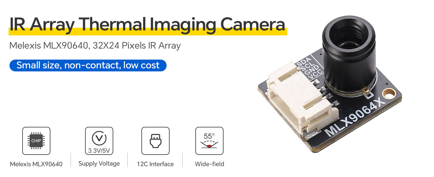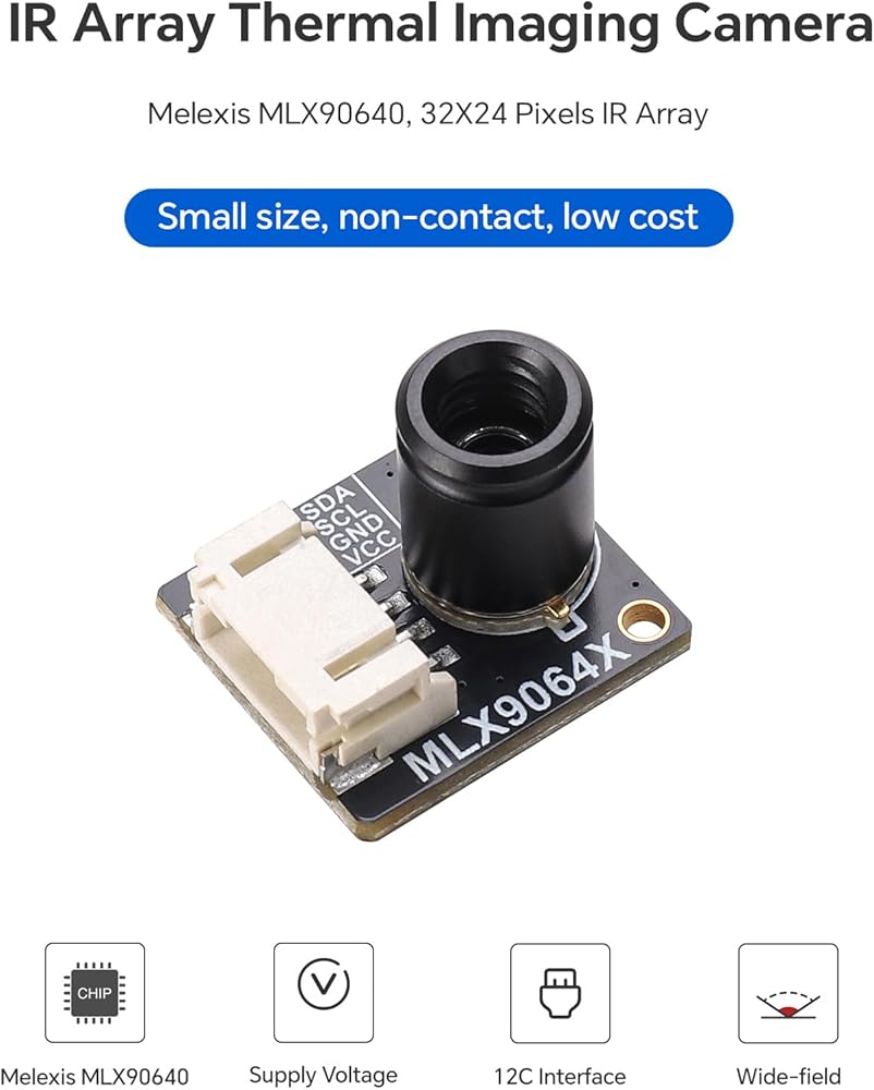 Cost-Effective Thermal Vision: Features a Melexis MLX90640 32x24 pixel IR array, providing a budget-friendly entry into thermal imaging for projects that don't require ultra-high resolution.