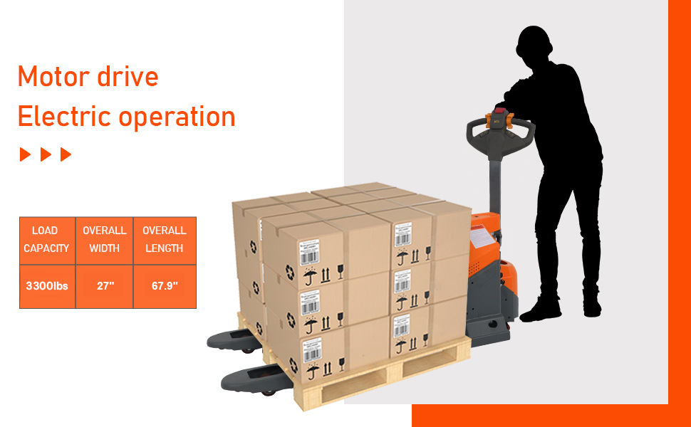 This pallet jack with load capacity of 3300 lbs. It goes forward and backward, up and down by electricity.