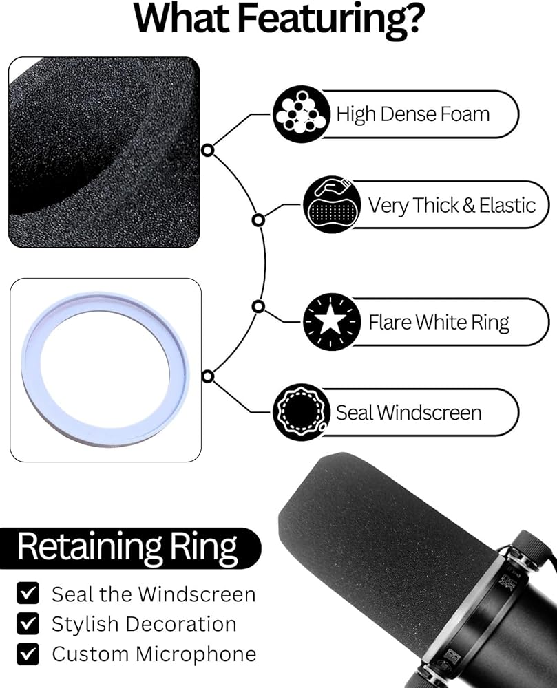 Customized with Stylish White Retaining Ring: Features a custom white base-sealed ring for secure foam windscreen attachment to your SM7B microphone series personalizing and identifying on color