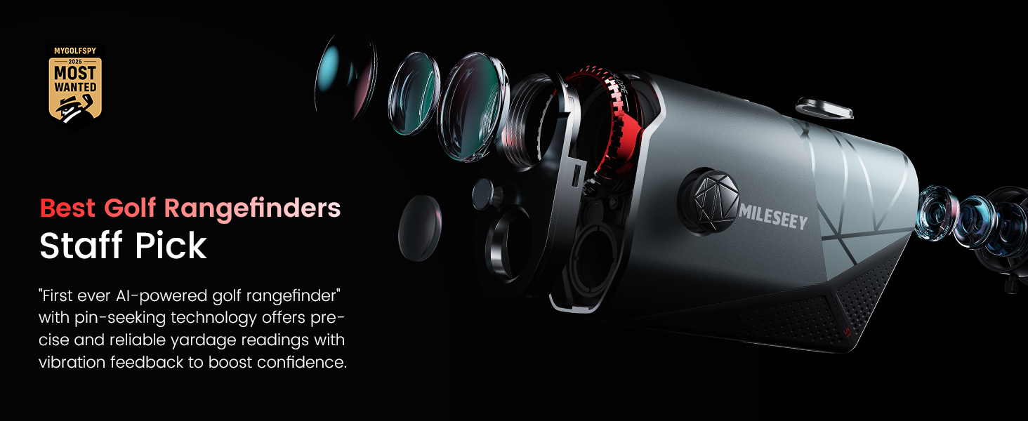 AI Golf Rangefinder with Smart Slope, 2000 Yards Laser Range Finder 7.5X Magnification, 0.1s Flag Pole Locking Vibration, Magnetic Mount - MILESEEY GenePro S1
