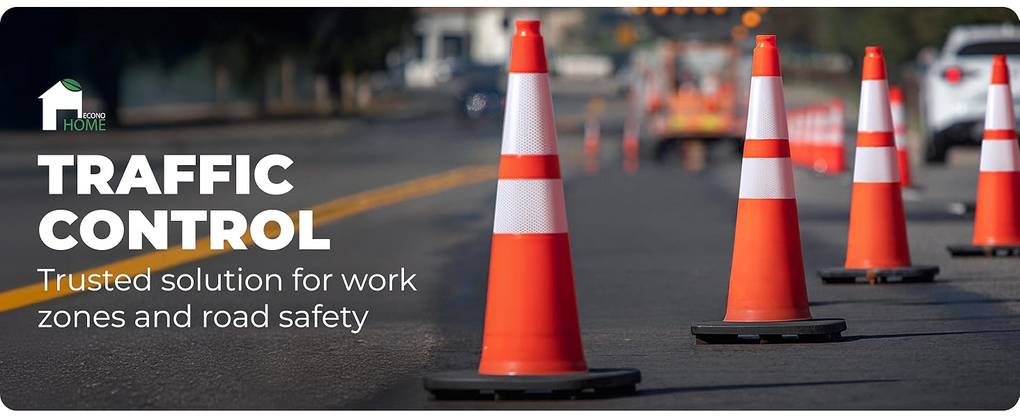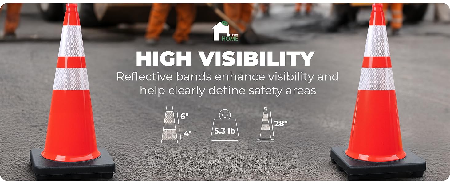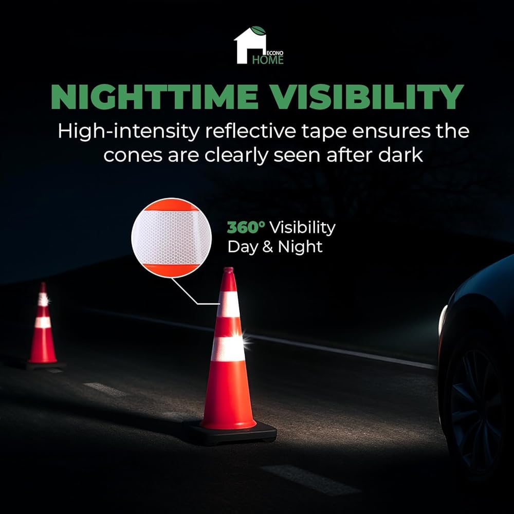 Nighttime Visibility - These orange cones with high-intensity 360° reflective bands help drivers spot hazards from afar after dark and in daylight, guiding traffic around a work zone or driveway.
